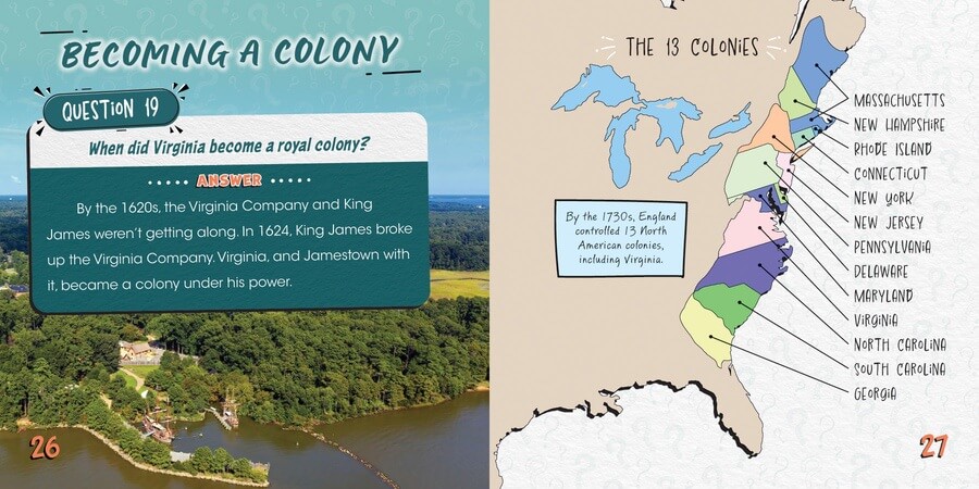 The first permanent English settlement in North America, Jamestown is the start of the colonial period. Who settled this colony? Why did they come to North America? And how did they succeed after two-thirds of colonists died during the Starving Time? Readers learn the answers to these questions and more in the pages of this engaging historical volume. The fun question-and-answer format tackles key social studies curriculum concepts simply, offering the most pertinent information readers need. Historical images, maps, and graphic organizers complement the main text.