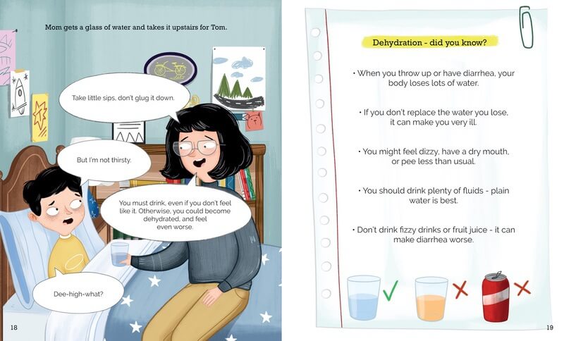 Yuck! Having a stomach bug is tough on kids and parents alike. These easily spread illnesses can sweep through a classroom or a family in record time, so figuring out the problem quickly can help keep others from getting sick. How do you know you have a stomach bug and didn't just eat too much cake? This book helps readers answer that question—with that very example and other relatable moments included in an illustrated story starring a kid with a stomach bug. How germs spread and how to treat someone with a stomach bug are topics also covered in the main content.