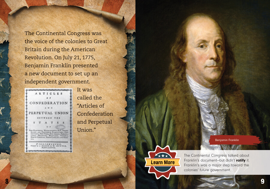 After the last battle of the American Revolution was fought, the leaders of the young United States still faced an uphill battle: How to govern the new nation with its diverse citizens and conflicting viewpoints. This enlightening text will introduce readers to the Articles of Confederation, the first written document to establish the United States national government. Key details regarding the Articles of Confederation are discussed, including its accomplishments and shortcomings, in an approachable way that is both compelling and accessible to struggling readers. This lively text also features striking images, a constructive timeline, and intriguing fact boxes to make it a beneficial addition to any social studies collection.
