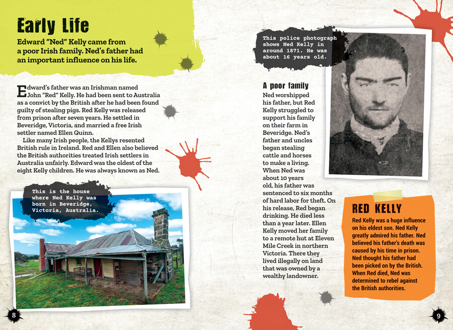 The outlaw Ned Kelly is a folk hero whose life of crime led to his infamy in Australia in the late 1800s. From stealing horses to murder, Kelly became a wanted man. In this book, readers find out what happened once Kelly had a price on his head, able to be collected only through his capture or death. Including an intriguing look at Australia's culture, quotes from those who were there, sidebars, and fact boxes, this volume allows readers to separate fact from fiction in the story of Ned Kelly. Complementary photographs and historical images correlate to the achievable, interesting text.