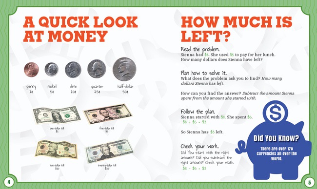 With full-color photos and simple, engaging language, this book introduces young readers to word problems involving money, helping them learn the skills needed to handle money on a daily basis. Words to Know help students learn new vocabulary and “Moments in Minting” sidebars introduce young readers to interesting facts about currency.